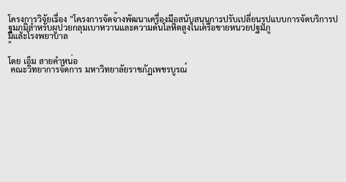 โครงการจัดจ้างพัฒนาเครื่องมือสนับสนุนการปรับเปลี่ยนรูปแบบการจัดบริการปฐมภูมิสำหรับผู้ป่วยกลุ่มเบาหวานและความดันโลหิตสูงในเครือข่ายหน่วยปฐมภูมิและโรงพยาบาล