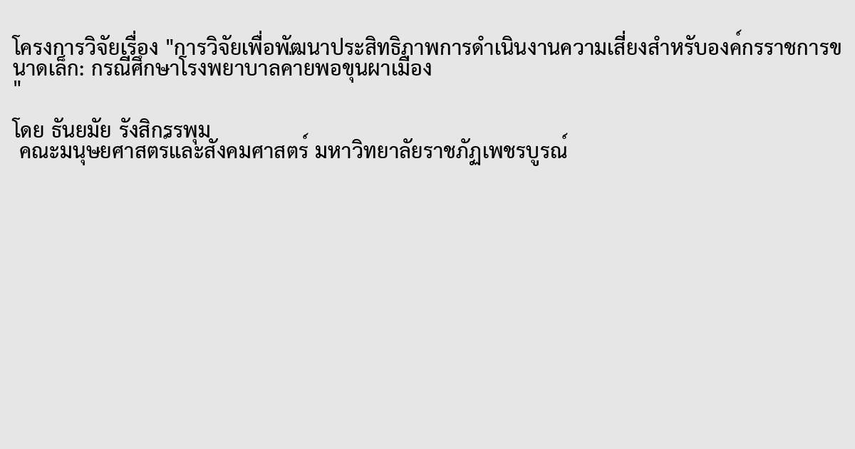 การวิจัยเพื่อพัฒนาประสิทธิภาพการดำเนินงานความเสี่ยงสำหรับองค์กรราชการขนาดเล็ก: กรณีศึกษาโรงพยาบาลค่ายพ่อขุนผาเมือง