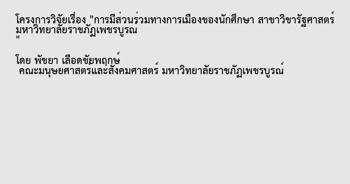 การมีส่วนร่วมทางการเมืองของนักศึกษา สาขาวิชารัฐศาสตร์ มหาวิทยาลัยราชภัฏเพชรบูรณ์