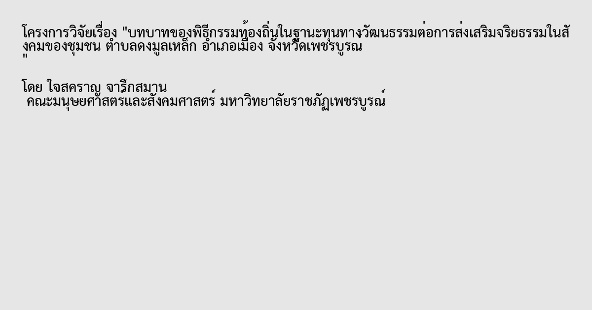 บทบาทของพิธีกรรมท้องถิ่นในฐานะทุนทางวัฒนธรรมต่อการส่งเสริมจริยธรรมในสังคมของชุมชน ตำบลดงมูลเหล็ก อำเภอเมือง จังหวัดเพชรบูรณ์