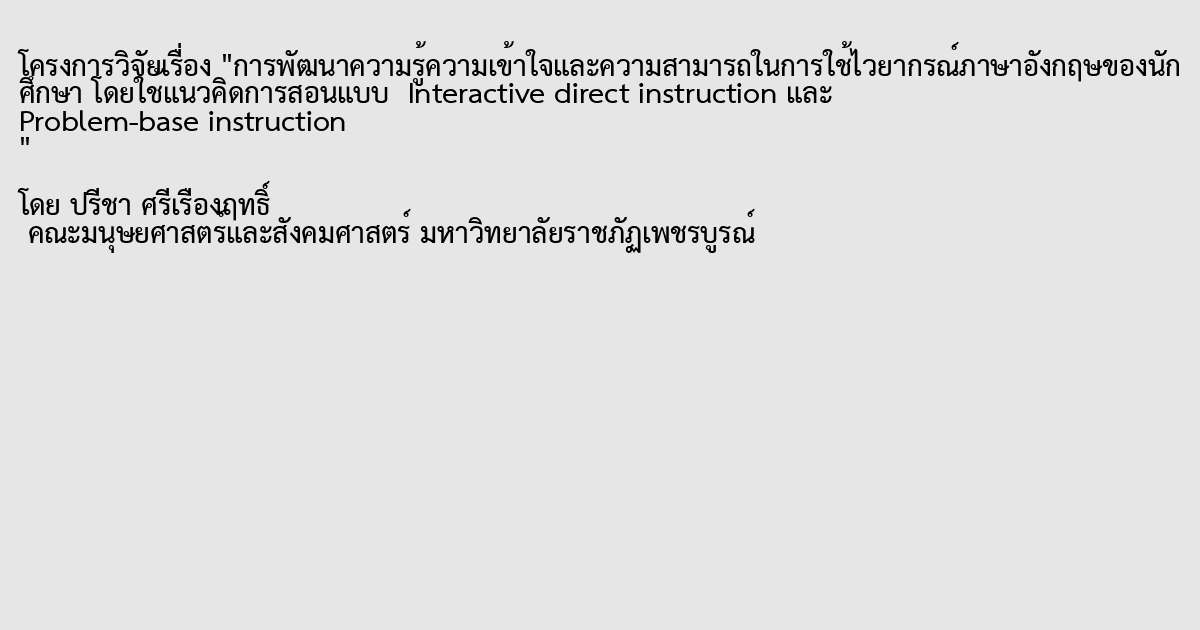 การพัฒนาความรู้ความเข้าใจและความสามารถในการใช้ไวยากรณ์ภาษาอังกฤษของนักศึกษา โดยใช้แนวคิดการสอนแบบ Interactive direct instruction และ Problem-base instruction