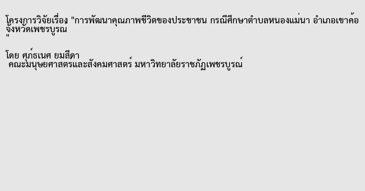 การพัฒนาคุณภาพชีวิตของประชาชน กรณีศึกษาตำบลหนองแม่นา อำเภอเขาค้อ จังหวัดเพชรบูรณ์