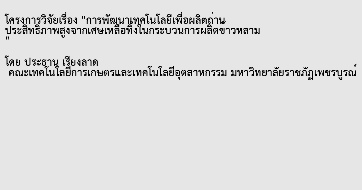 การพัฒนาเทคโนโลยีเพื่อผลิตถ่าน ประสิทธิภาพสูงจากเศษเหลือทิ้งในกระบวนการผลิตข้าวหลาม