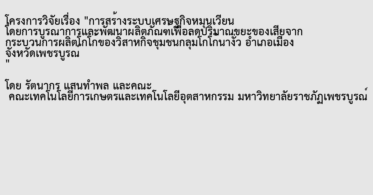 โครงการย่อยที่ 3 การวิจัยครั้งนี้มีวัตถุประสงค์ 1) เพื่อออกแบบผลิตภัณฑ์ผ้ามัดย้อมจากเปลือกโกโก้แห้งโดยใช้เทคนิคชิโบริ 2) เพื่อศึกษาความพึงพอใจของผู้บริโภคที่มีต่อผลิตภัณฑ์ผ้ามัดย้อมจากเปลือกโกโก้แห้งโดยใช้เทคนิคชิโบริ และ 3) เพื่อถ่ายทอดองค์ความรู้การออกแบบผลิตภัณฑ์ผ้ามัดย้อมจากเปลือกโกโก้แห้งโดยใช้เทคนิคชิโบริ โดยการเก็บข้อมูลเพื่อทำการวิจัยครั้งนี้ ได้แบ่งออกเป็น 4 ระยะคือ ระยะที่ 1 ดำเนินการศึกษาความต้องการในการออกแบบผลิตภัณฑ์ผ้ามัดย้อมจากเปลือกโกโก้แห้งโดยใช้เทคนิคชิโบริ ระยะที่ 2 ดำเนินการออกแบบผลิตภัณฑ์ผ้ามัดย้อมจากเปลือกโกโก้แห้งโดยใช้เทคนิคชิโบริ ตามผลการสำรวจความต้องการของผู้บริโภค และส่งผู้เชี่ยวชาญประเมินการออกแบบผลิตภัณฑ์ผ้ามัดย้อมจากเปลือกโกโก้แห้งด้วยเทคนิคชิโบริ เพื่อปรับปรุง/แก้ไข ตามคำแนะนำของผู้เชี่ยวชาญ และสร้างต้นแบบผลิตภัณฑ์ผ้ามัดย้อมจากเปลือกโกโก้แห้งด้วยเทคนิคชิโบริ ระยะที่ 3 สำรวจความพึงพอใจที่มีต่อผลิตภัณฑ์ผ้ามัดย้อมจากเปลือกโกโก้แห้งด้วยเทคนิคชิโบริ และระยะที่ 4 ดำเนินการถ่ายทอดองค์ความรู้การออกแบบผลิตภัณฑ์ผ้ามัดย้อมจากเปลือกโกโกแห้งด้วยเทคนิคชิโบริ แก่วิสาหกิจชุมชนโกโก้นางั่ว กลุ่มตัวอย่างที่ใช้ในการศึกษาครั้งนี้คือ นักท่องเที่ยวที่เข้ามาเที่ยวในถนนคนเดินไทหล่ม และประชาชนทั่วไปที่มีความชอบในการบริโภคผ้ามัดย้อมจากสีธรรมชาติ จำนวน 200 คน ซึ่งเป็นกลุ่มตัวอย่างที่ได้จากการสุ่มแบบบังเอิญ (Accidental sampling) เครื่องมือที่ใช้ในการเก็บรวบรวมข้อมูลคือ แบบสอบบถามออนไลน์ ผ่าน Google Form สถิติที่ใช้ในการวิเคราะห์ข้อมูลได้แก่ ค่าเฉลี่ย ค่าความถี่ และค่าร้อยละ