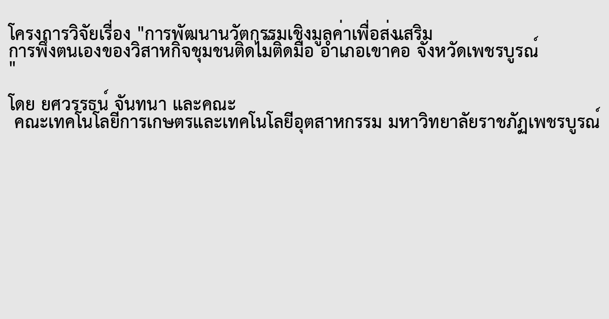 Integrated Development of Value Innovation to promote self-sufficiency of Tidmaitidmue Community Enterprise, Khao Kho District, Phetchabun Province. The objective is to improve the production process. Reduce costs to increase productivity It is divided into 3 sub-research projects as follows: