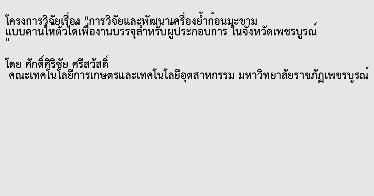 การวิจัยและพัฒนาเครื่องย้ำก้อนมะขาม แบบคานให้ตัวได้เพื่องานบรรจุสำหรับผู้ประกอบการ ในจังหวัดเพชรบูรณ์