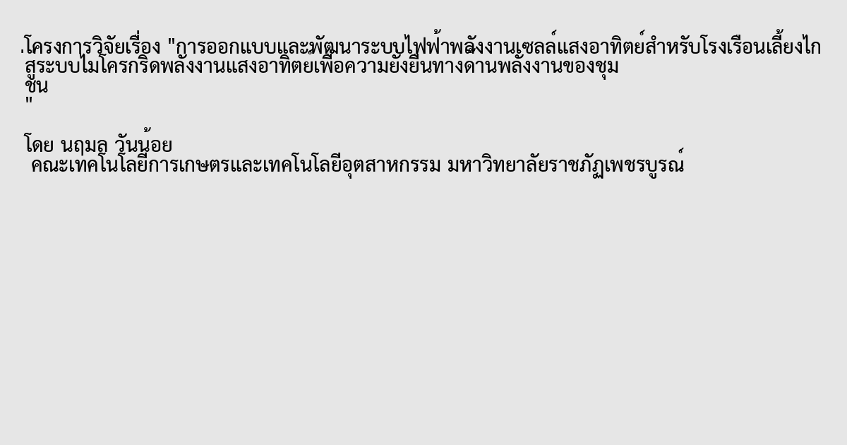 ระบบไฟฟ้าพลังงานแสงอาทิตย์,ชุดจัดเก็บพลังงาน,โรงเรือนเลี้ยงไก่,ระบบไมโครกริด,Solar power system,Energy storage,Chicken house,Microgrid system