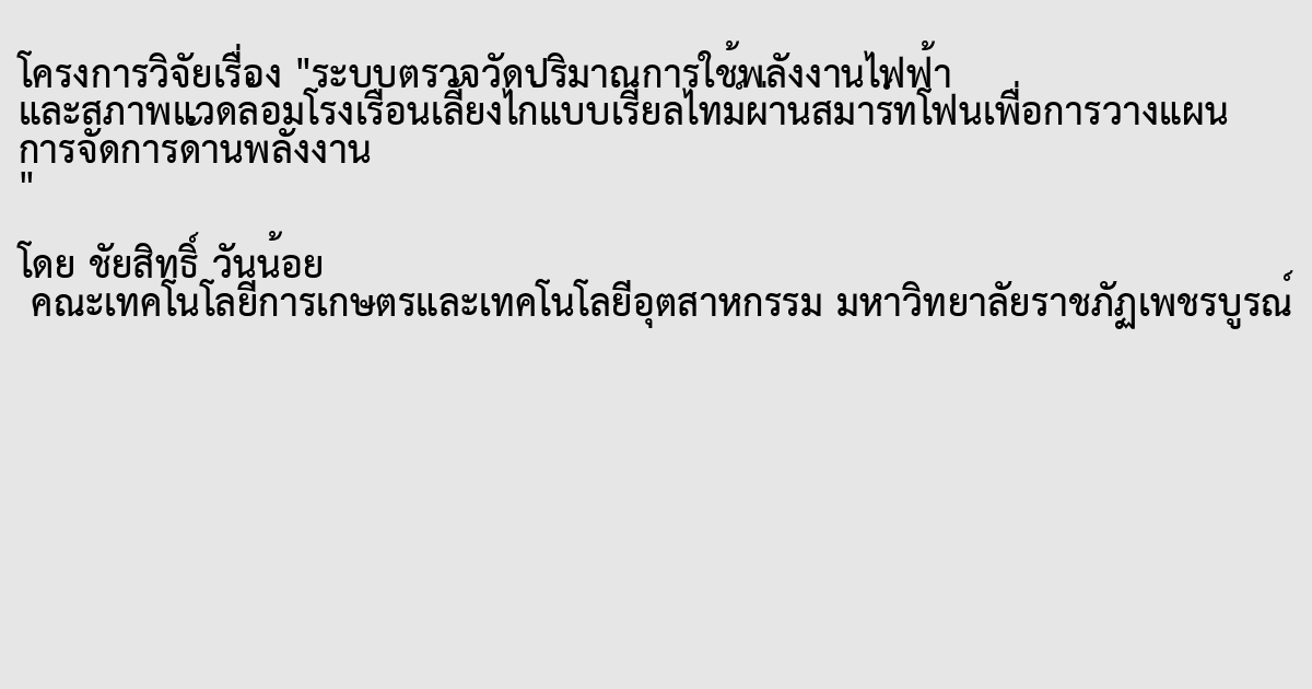 ระบบตรวจวัดปริมาณการใช้พลังงานไฟฟ้า และสภาพแวดล้อมโรงเรือนเลี้ยงไก่แบบเรียลไทม์ผ่านสมาร์ทโฟนเพื่อการวางแผนการจัดการด้านพลังงาน