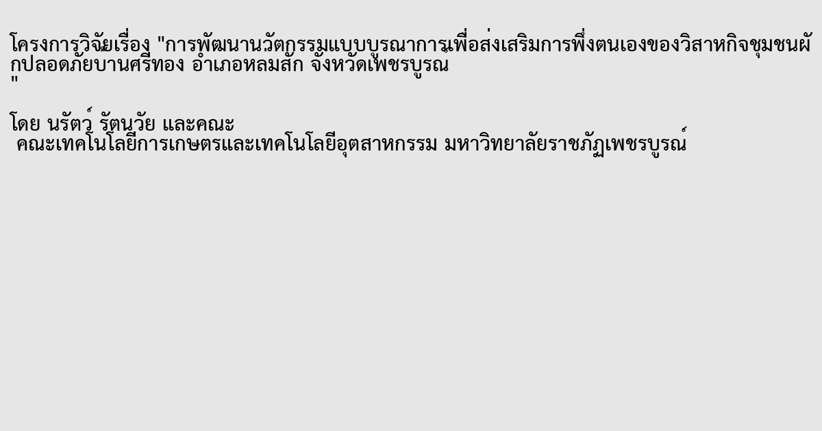 Integrated innovation development research project to promote self-reliance of Ban Sri Thong Safe Vegetable Community Enterprise, Lak Sak District, Phetchabun Province The objective is to improve the production process. Reduce costs to increase productivity It is divided into 4 sub-research projects as follows: