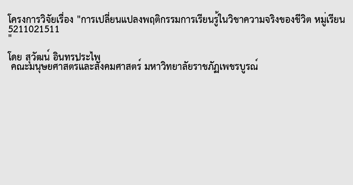 การเปลี่ยนแปลงพฤติกรรมการเรียนรู้ในวิชาความจริงของชีวิต หมู่เรียน 5211021511