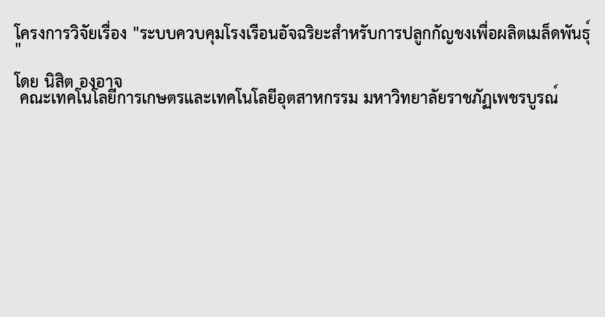 ระบบควบคุม,โรงเรือนอัจฉริยะ,กัญชง,Control System,Smart Greenhouse,Hemp