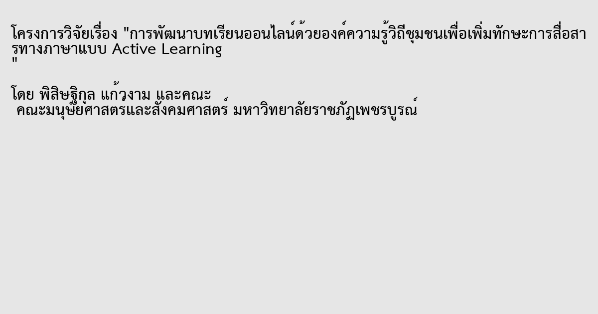การพัฒนาบทเรียนออนไลน์ด้วยองค์ความรู้วิถีชุมชนเพื่อเพิ่มทักษะการสื่อสารทางภาษาแบบ Active Learning