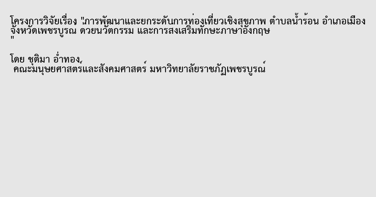การพัฒนาและยกระดับการท่องเที่ยวเชิงสุขภาพ ตำบลน้ำร้อน อำเภอเมือง จังหวัดเพชรบูรณ์ ด้วยนวัตกรรม และการส่งเสริมทักษะภาษาอังกฤษ