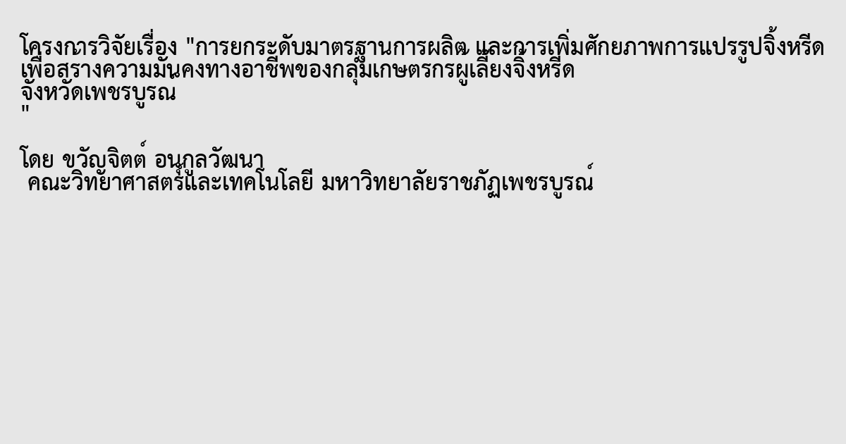 Upgrading the standard of cricket production by the cricket farmer group, Khek Noi Subdistrict, Mueang District, Phetchabun Province. The criteria for Good Agricultural Practice have been followed for the cricket farm. Become a model standard farm that is correct according to standard มกษ.8202-2560. It is a general standard (GAP Cricket Farm) and has a quality product.