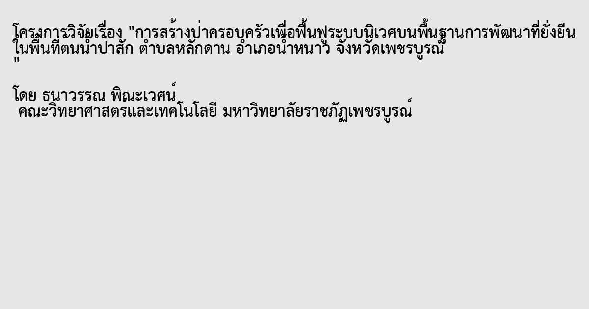 การสร้างป่าครอบครัวเพื่อฟื้นฟูระบบนิเวศบนพื้นฐานการพัฒนาที่ยั่งยืน ในพื้นที่ต้นน้ำป่าสัก ตำบลหลักด่าน อำเภอน้ำหนาว จังหวัดเพชรบูรณ์