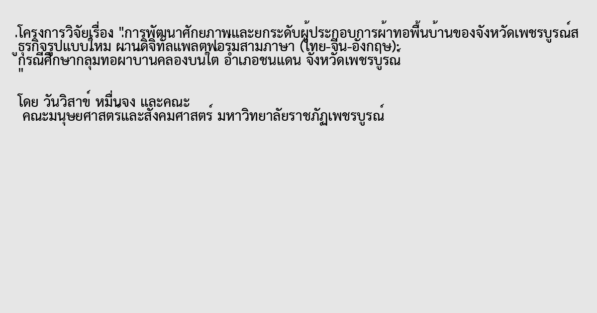 ผ้าทอพื้นบ้าน,ธุรกิจรูปแบบใหม่,เทคโนโลยีดิจิทัล,ภาษาจีน,ภาษาอังกฤษ,Woven Fabrics,New Business Model,Digital Platform,Chinese,English
