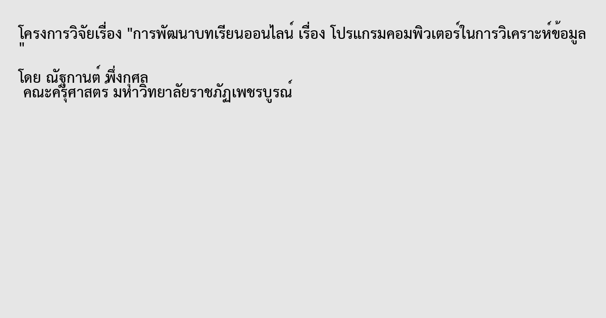 การพัฒนาบทเรียนออนไลน์ เรื่อง โปรแกรมคอมพิวเตอร์ในการวิเคราะห์ข้อมูล