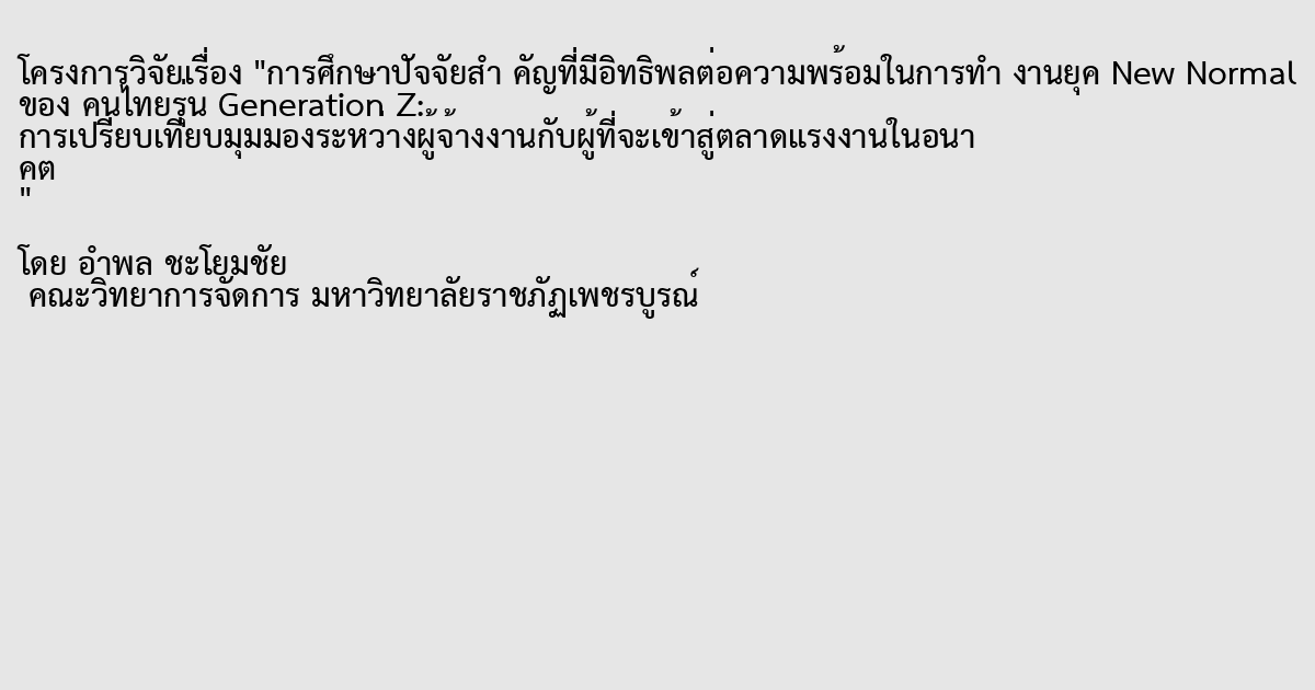 การศึกษาปัจจัยสำ คัญที่มีอิทธิพลต่อความพร้อมในการทำ งานยุค New Normal ของ คนไทยรุ่น Generation Z: การเปรียบเทียบมุมมองระหว่างผู้จ้างงานกับผู้ที่จะเข้าสู่ตลาดแรงงานในอนาคต