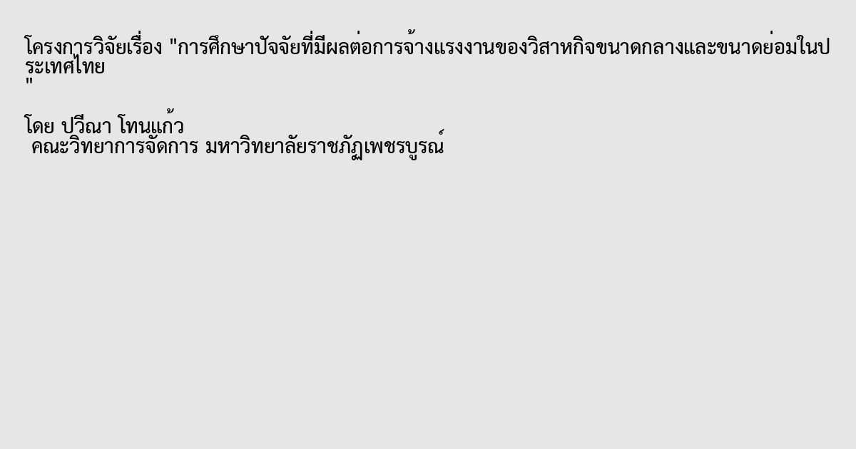การศึกษาปัจจัยที่มีผลต่อการจ้างแรงงานของวิสาหกิจขนาดกลางและขนาดย่อมในประเทศไทย