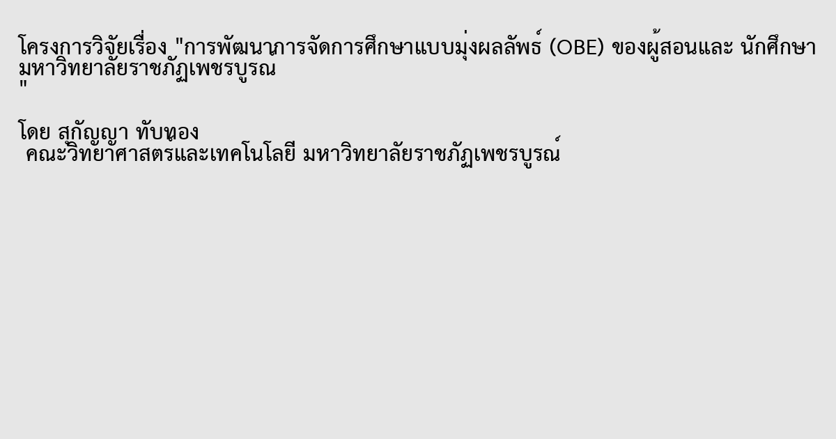 การพัฒนาการจัดการศึกษาแบบมุ่งผลลัพธ์ (OBE) ของผู้สอนและ นักศึกษา มหาวิทยาลัยราชภัฏเพชรบูรณ์