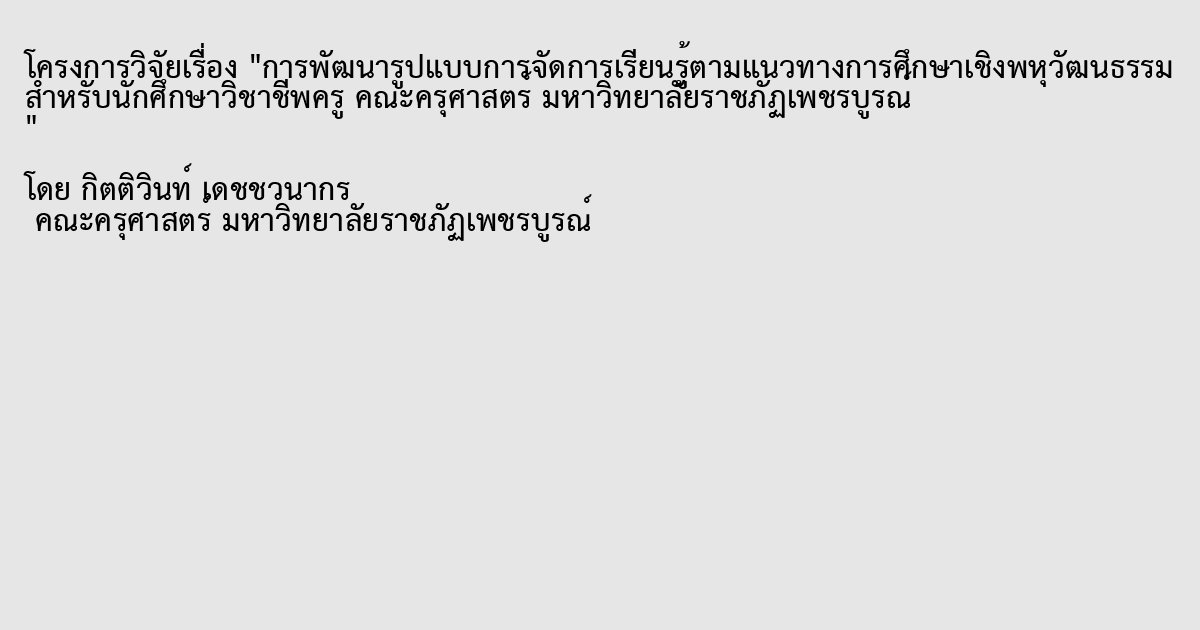การพัฒนารูปแบบการจัดการเรียนรู้ตามแนวทางการศึกษาเชิงพหุวัฒนธรรม สำหรับนักศึกษาวิชาชีพครู คณะครุศาสตร์ มหาวิทยาลัยราชภัฏเพชรบูรณ์