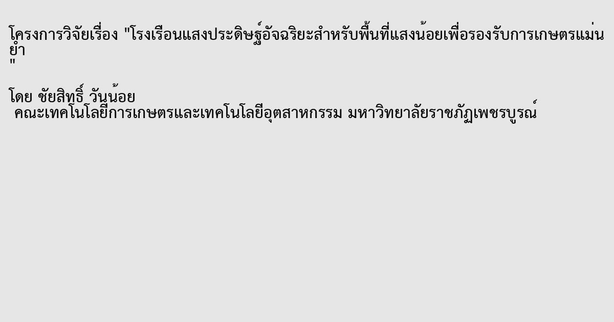 โรงเรือนแสงประดิษฐ์อัจฉริยะ,พื้นที่แสงน้อย,การเกษตรแม่นยำ,Smart Artificial Lighting Greenhouses,Low Light Areas,Precision Agriculture