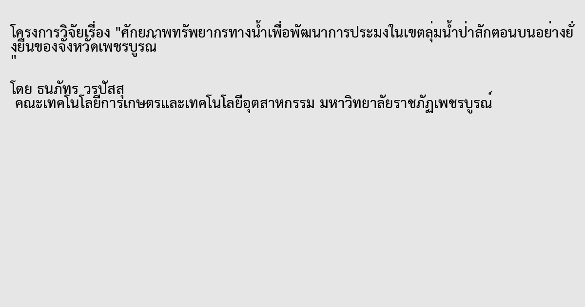 ศักยภาพทรัพยากรทางน้ำเพื่อพัฒนาการประมงในเขตลุ่มน้ำป่าสักตอนบนอย่างยั่งยืนของจังหวัดเพชรบูรณ์