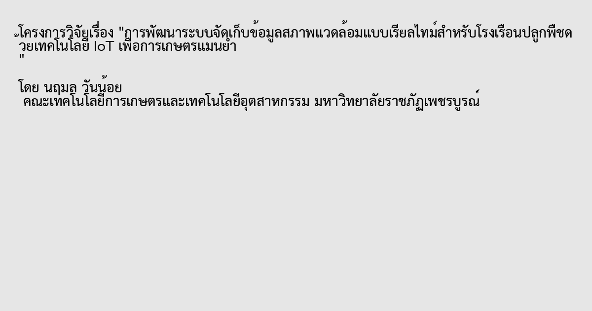 ระบบจัดเก็บข้อมูลสภาพแวดล้อม,เรียลไทม์,โรงเรือนปลูกพืช,เทคโนโลยี IoT,การเกษตรแม่นยำ,Environmental Data Logging System,Real-time,Plant House,IoT Technology,Precision Agriculture
