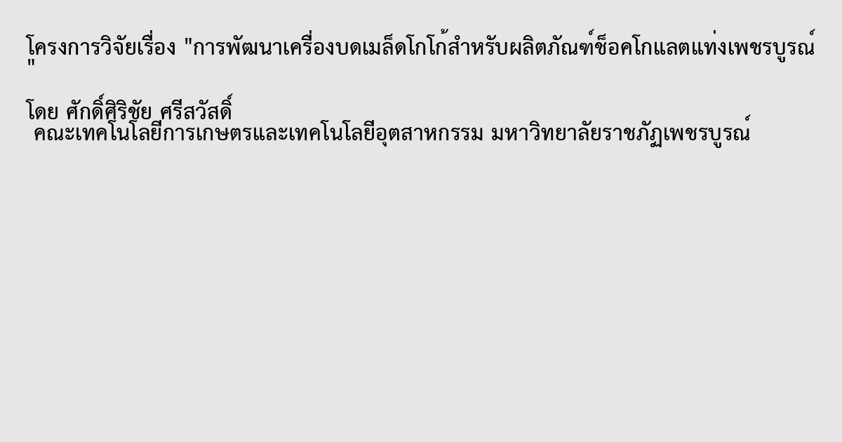 การพัฒนาเครื่องบดเมล็ดโกโก้สำหรับผลิตภัณฑ์ช็อคโกแลตแท่งเพชรบูรณ์