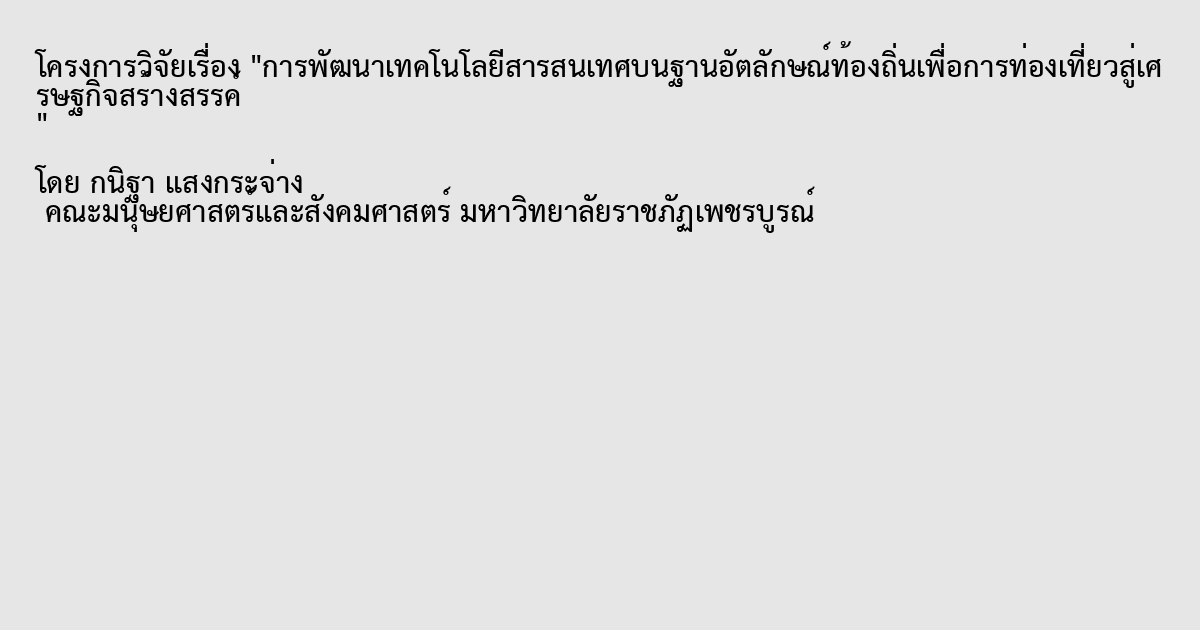 การพัฒนาเทคโนโลยีสารสนเทศบนฐานอัตลักษณ์ท้องถิ่นเพื่อการท่องเที่ยวสู่เศรษฐกิจสร้างสรรค์