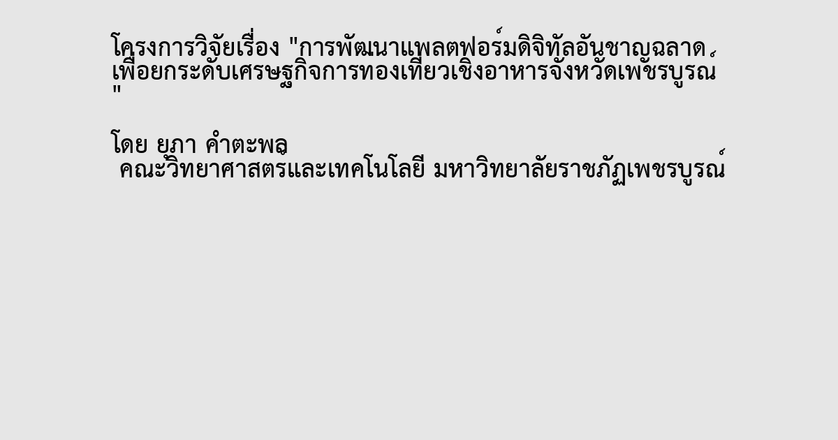 การพัฒนาแพลตฟอร์มดิจิทัลอันชาญฉลาด เพื่อยกระดับเศรษฐกิจการท่องเที่ยวเชิงอาหารจังหวัดเพชรบูรณ์