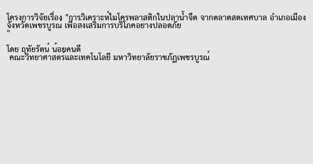 การวิเคราะห์ไมโครพลาสติกในปลาน้ำจืด จากตลาดสดเทศบาล อำเภอเมือง จังหวัดเพชรบูรณ์ เพื่อส่งเสริมการบริโภคอย่างปลอดภัย