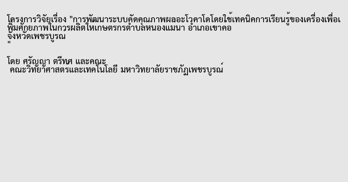 การเรียนรู้ของเครื่อง,การคัดคุณภาพ,คอมพิวเตอร์วิทัศน์,อะโวคาโด,Machine Learning,Quality grading,Computer Vision,Avocado