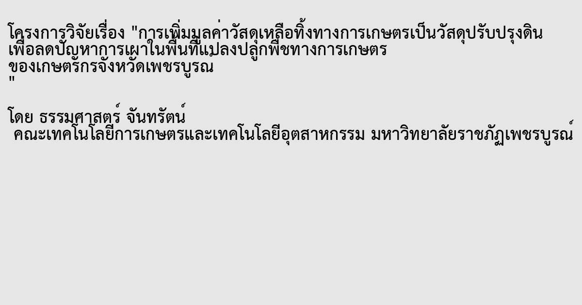 การเพิ่มมูลค่าวัสดุเหลือทิ้งทางการเกษตรเป็นวัสดุปรับปรุงดิน เพื่อลดปัญหาการเผาในพื้นที่แปลงปลูกพืชทางการเกษตร ของเกษตรกรจังหวัดเพชรบูรณ์