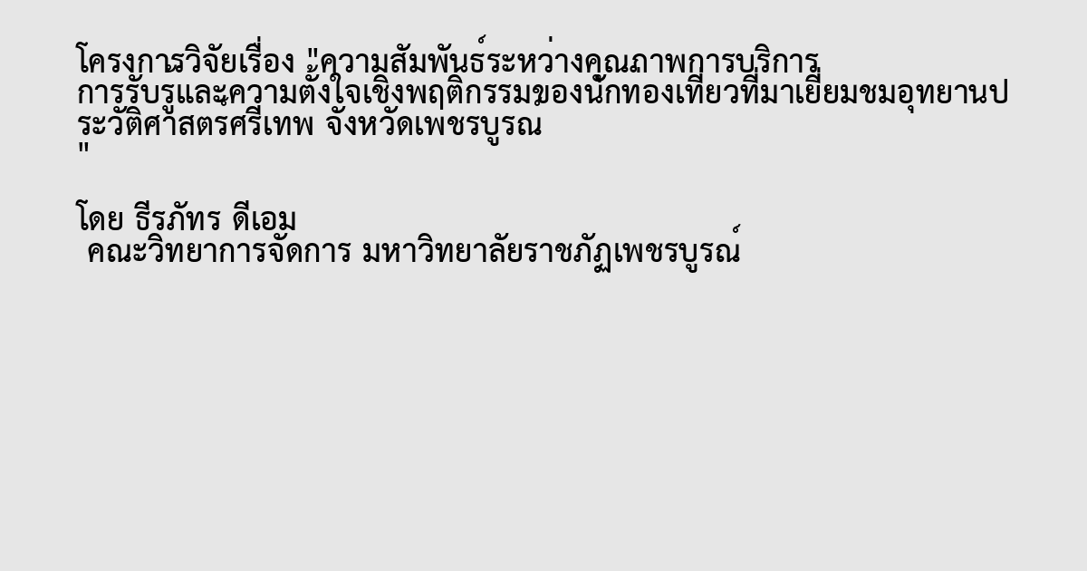 ความสัมพันธ์ระหว่างคุณภาพการบริการ การรับรู้และความตั้งใจเชิงพฤติกรรมของนักท่องเที่ยวที่มาเยี่ยมชมอุทยานประวัติศาสตร์ศรีเทพ จังหวัดเพชรบูรณ์