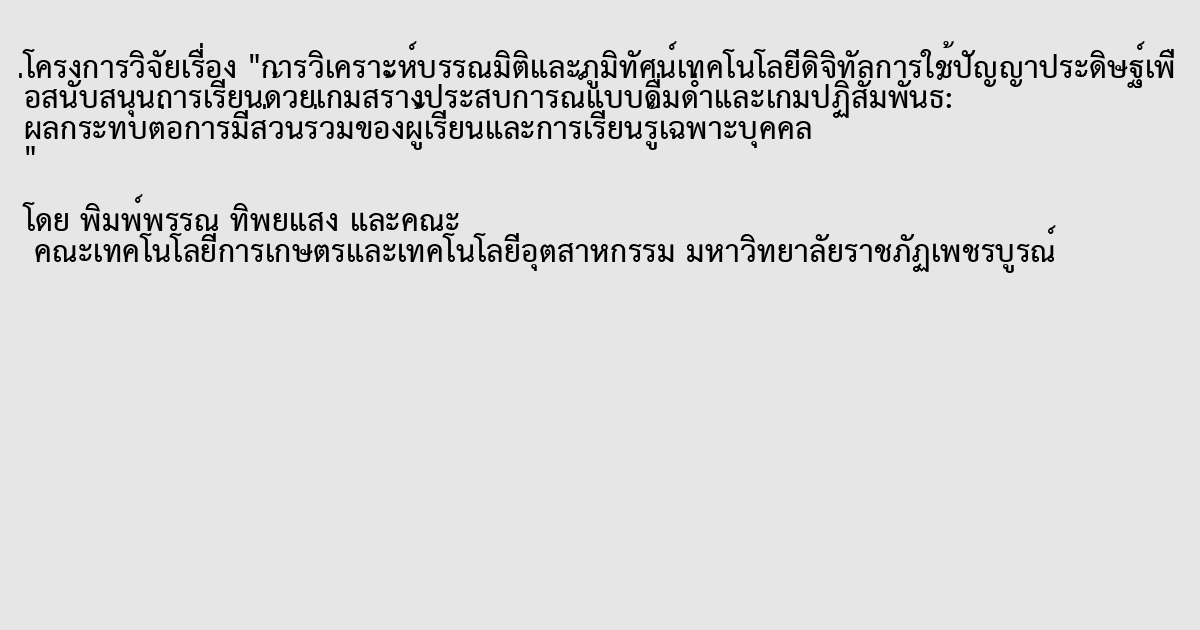 การวิเคราะห์บรรณมิติและภูมิทัศน์เทคโนโลยีดิจิทัลการใช้ปัญญาประดิษฐ์เพื่อสนับสนุนการเรียนด้วยเกมสร้างประสบการณ์แบบดื่มด่ำและเกมปฏิสัมพันธ์: ผลกระทบต่อการมีส่วนร่วมของผู้เรียนและการเรียนรู้เฉพาะบุคคล