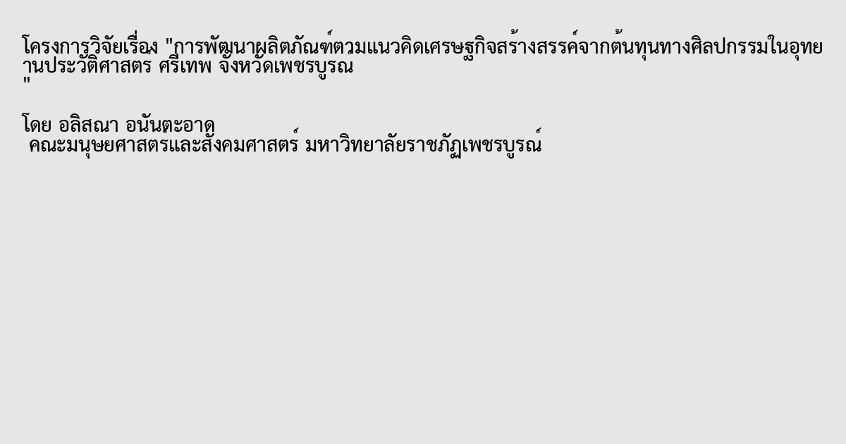 การพัฒนาผลิตภัณฑ์ตามแนวคิดเศรษฐกิจสร้างสรรค์จากต้นทุนทางศิลปกรรมในอุทยานประวัติศาสตร์ ศรีเทพ จังหวัดเพชรบูรณ์