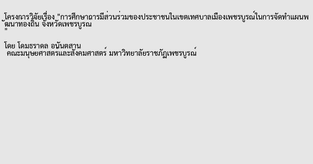 การศึกษาการมีส่วนร่วมของประชาชนในเขตเทศบาลเมืองเพชรบูรณ์ในการจัดทำแผนพัฒนาท้องถิ่น จังหวัดเพชรบูรณ์