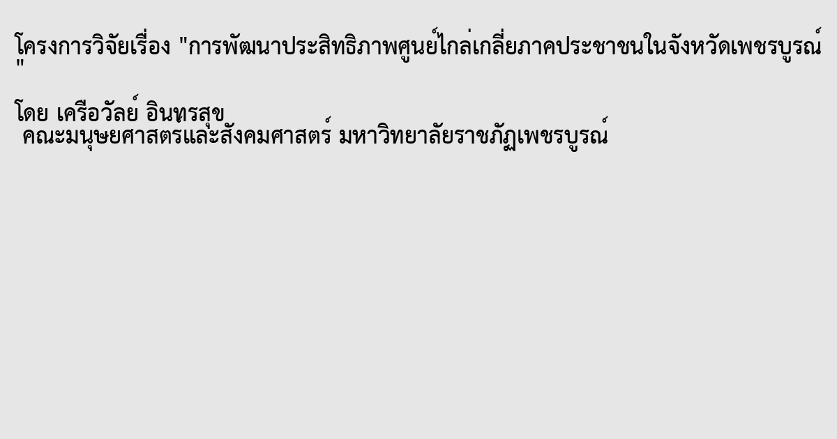[ข้อมูลทั่วไป] 2567 : การพัฒนาประสิทธิภาพศูนย์ไกล...ประชาชนในจังหวัดเพชรบูรณ์