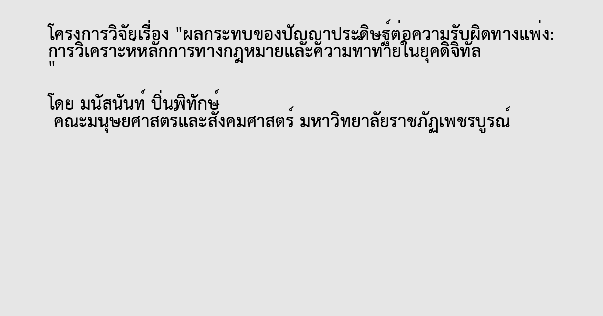 ผลกระทบของปัญญาประดิษฐ์ต่อความรับผิดทางแพ่ง: การวิเคราะห์หลักการทางกฎหมายและความท้าทายในยุคดิจิทัล