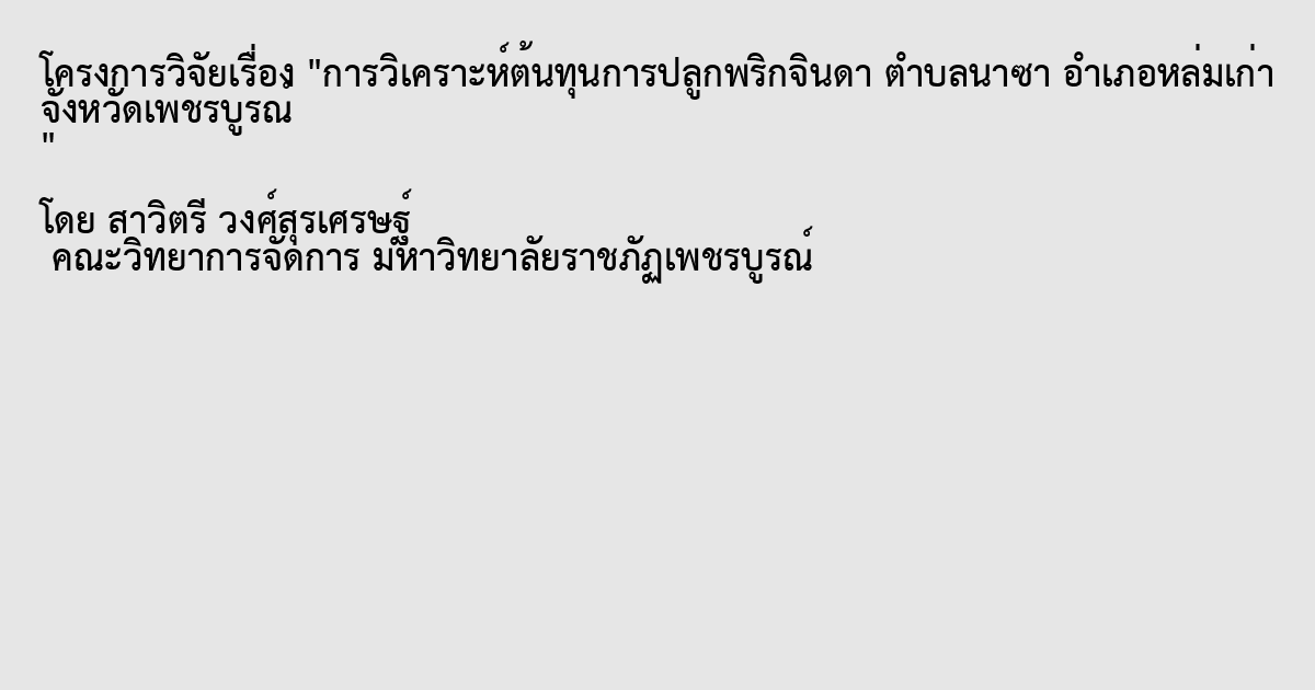 การวิเคราะห์ต้นทุนการปลูกพริกจินดา ตำบลนาซา อำเภอหล่มเก่า จังหวัดเพชรบูรณ์