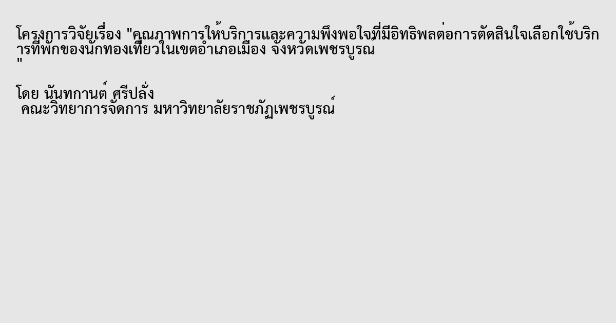 คุณภาพการให้บริการและความพึงพอใจที่มีอิทธิพลต่อการตัดสินใจเลือกใช้บริการที่พักของนักท่องเที่ยวในเขตอำเภอเมือง จังหวัดเพชรบูรณ์
