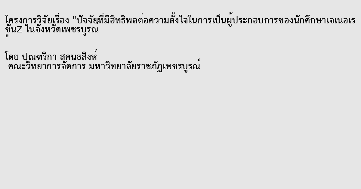 ปัจจัยที่มีอิทธิพลต่อความตั้งใจในการเป็นผู้ประกอบการของนักศึกษาเจเนอเรชั่นZ ในจังหวัดเพชรบูรณ์