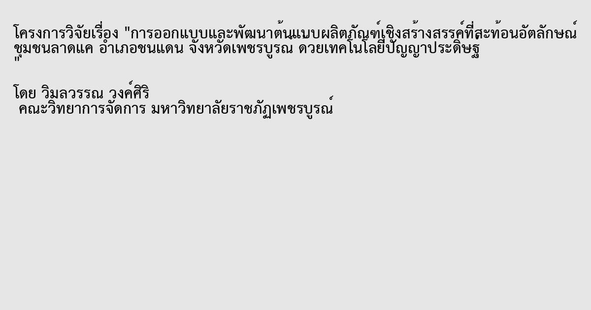 การออกแบบและพัฒนาต้นแบบผลิตภัณฑ์เชิงสร้างสรรค์ที่สะท้อนอัตลักษณ์ ชุมชนลาดแค อำเภอชนแดน จังหวัดเพชรบูรณ์ ด้วยเทคโนโลยีปัญญาประดิษฐ์