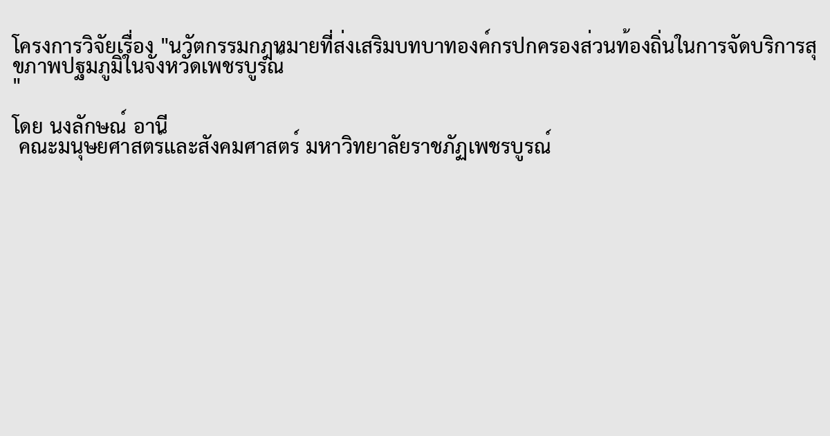 นวัตกรรมกฎหมายที่ส่งเสริมบทบาทองค์กรปกครองส่วนท้องถิ่นในการจัดบริการสุขภาพปฐมภูมิในจังหวัดเพชรบูรณ์