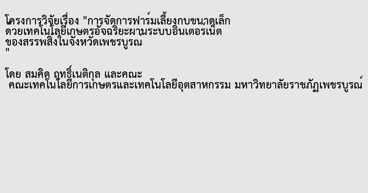 การจัดการฟาร์มเลี้ยงกบขนาดเล็ก ด้วยเทคโนโลยีเกษตรอัจฉริยะผ่านระบบอินเตอร์เน็ต ของสรรพสิ่งในจังหวัดเพชรบูรณ์