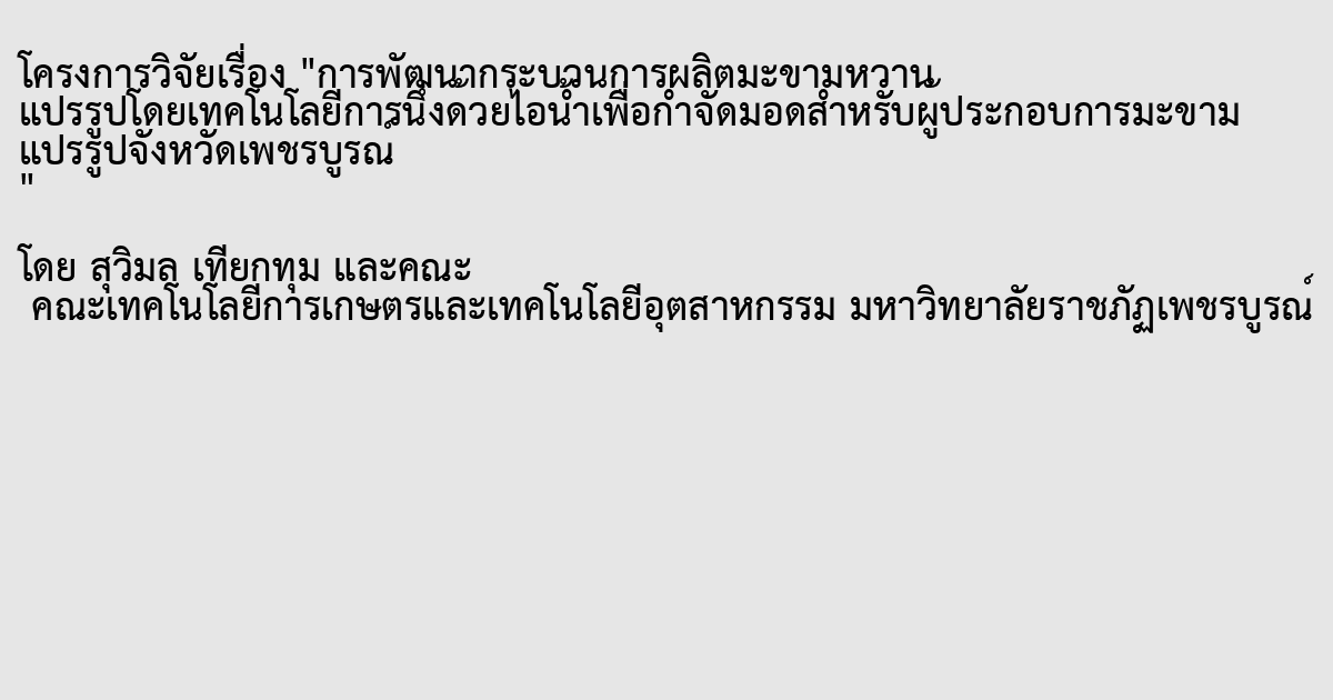 การพัฒนากระบวนการผลิตมะขามหวาน แปรรูปโดยเทคโนโลยีการนึ่งด้วยไอน้ำเพื่อกำจัดมอดสำหรับผู้ประกอบการมะขามแปรรูปจังหวัดเพชรบูรณ์