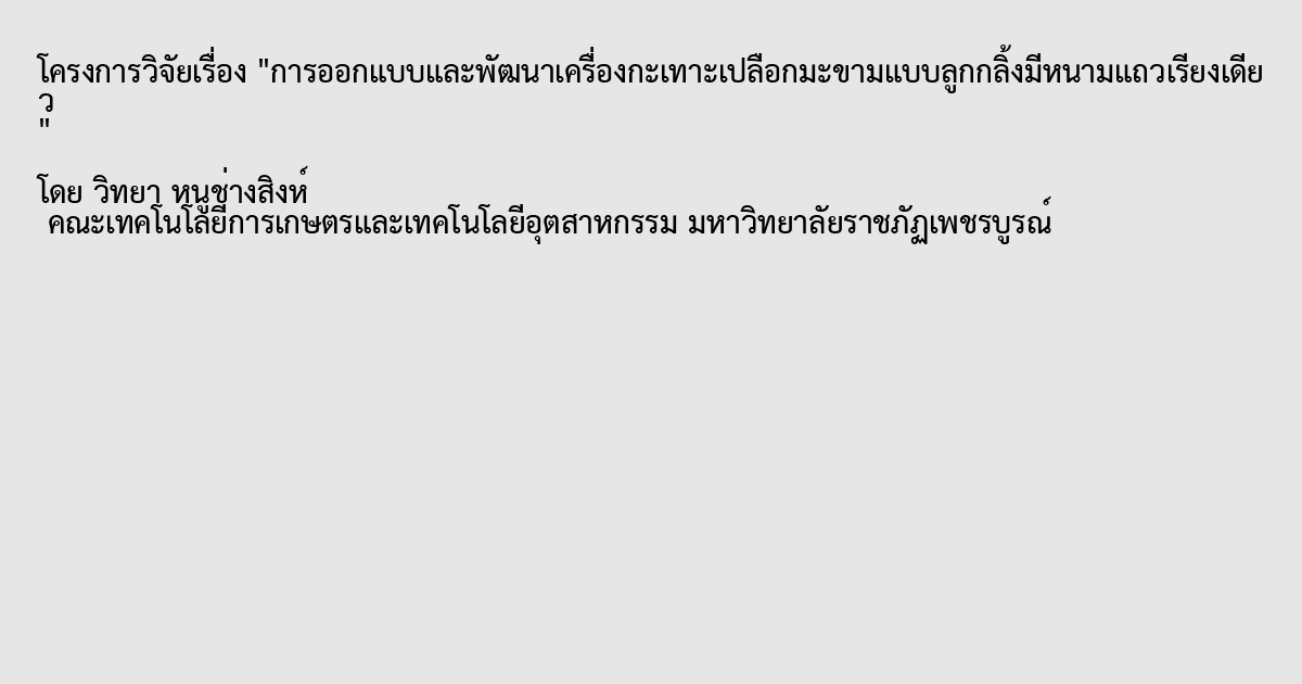 การออกแบบและพัฒนาเครื่องกะเทาะเปลือกมะขามแบบลูกกลิ้งมีหนามแถวเรียงเดียว