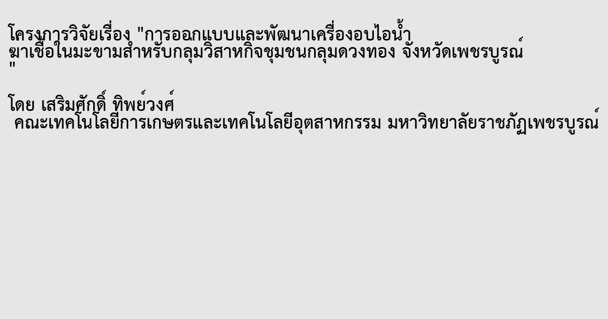 การออกแบบและพัฒนาเครื่องอบไอน้ำ ฆ่าเชื้อในมะขามสำหรับกลุ่มวิสาหกิจชุมชนกลุ่มดวงทอง จังหวัดเพชรบูรณ์