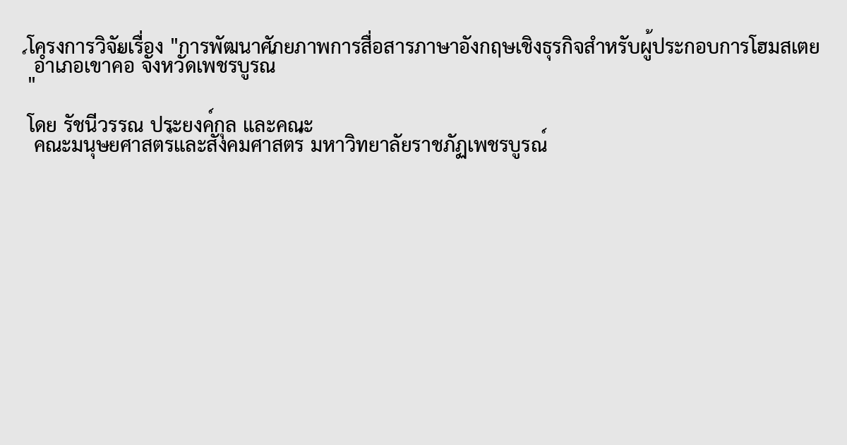 การพัฒนาศักยภาพการสื่อสารภาษาอังกฤษเชิงธุรกิจสำหรับผู้ประกอบการโฮมสเตย์ อำเภอเขาค้อ จังหวัดเพชรบูรณ์